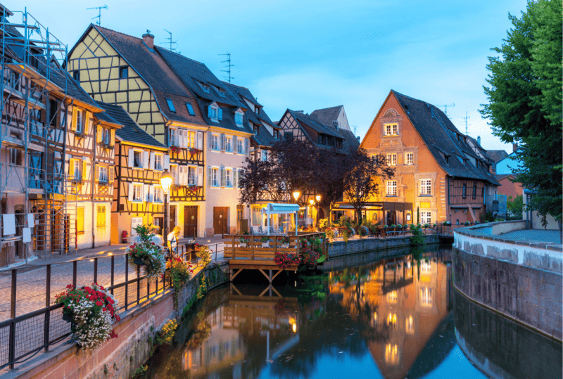 Matin — Strasbourg (~3h) : Palais du Rhin, Quartier européen, centre historique à pied, Cathédrale, Maison Kammerzell, Petite France. Déjeuner : non inclus. Réservation possible dans une table Michelin (selon disponibilités). Après-midi — Colmar (~2h30) : Little Venice, Maison Pfister, Koïfhus, Collégiale Saint-Martin + barque privée & Crémant. Soir : retour à Paris (Voiture : direct ; TGV : train A/R).